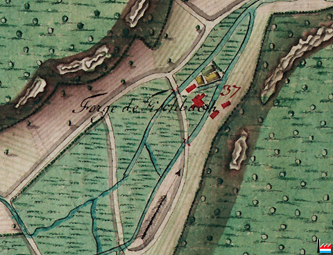 Forge de Fischbach (Ernz blanche) - 1777 (Carte de Ferraris - Bibliothèque royale de Belgique - 2010)