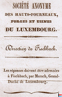 | 4.1847 | ![]() Motus Louis-Albert, directeur de la Société Anonyme des Hauts-Fourneaux, Forges et Usines du Luxembourg - Direction de Fischbach - Extrait d'une lettre du 17.4.1846 à A. Metz à Eich (Collection: Robert Goldschmit) Il me reste encore 29 kilolitre de Minerai de Mamer à fournir à Bissen, je ne pourrai donc vous prêter le lavoir que quand je n'en aurai plus besoin. ... ... |