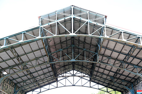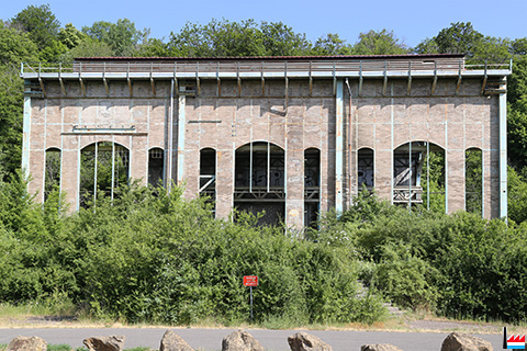 Halle des machines raccourcie, située derrière les hauts-fourneaux