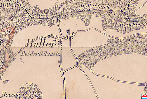Haller - Bei der Schmelz - Bannmillen - Altmühle (Carte Jean-Baptiste Liesch - 1862)