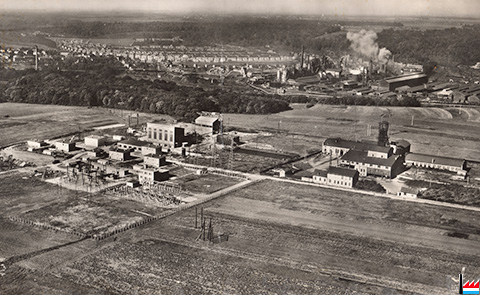 Mine de Montois-la-Montagne - A l'arrière USINE de HOMECOURT en Meurthe et Moselle. (Photo: 10.1957 - Documentation Aérienne Pédagogique LAPIE- St-Maur (Seine); Collection: industrie.lu)