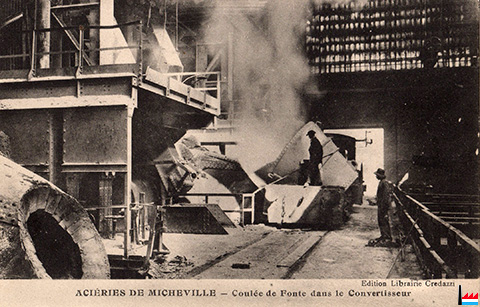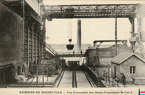 | Eugène Boulanger, ingénieur belge de Châtelet, venait de construire les hauts fourneaux de Mont Saint Martin et d’Esch sur Alzette. Il propose alors à Ferry et Curicque de passer du commerce du minerai à la création d’une usine sidérurgique. Le premier haut fourneau fut construit à Micheville en 1873, sur le modèle des installations les plus modernes de Cleveland en Angleterre. | |||