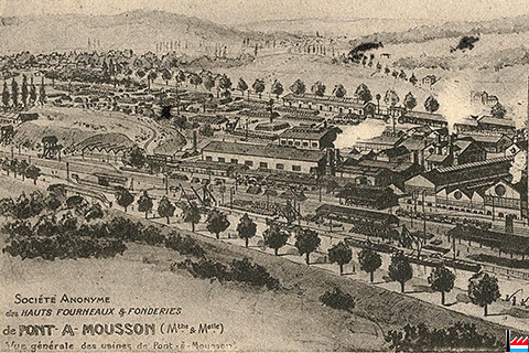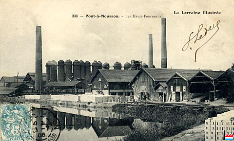 Pont-à-Mousson - Hauts-Fourneaux & Fonderies, vers 1908 (Carte postale; G. Peltier, Paris; Collection: industrie.lu)