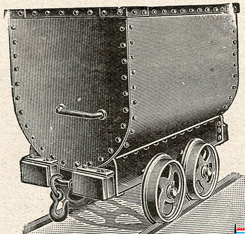 Berline pour mine, type "Pont-à-Mousson", montée sur trains de roues à roulements à double rangée et à rotule sur bille - 1935 (Collection: industrie.lu)