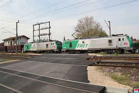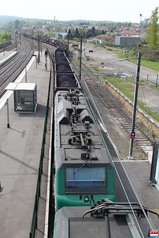 Train avec les locos SNCF 27060 et 27061 et des wagons chargés d'aggloméré à Dieulouard (Photos: 6.5.2013 jmo)