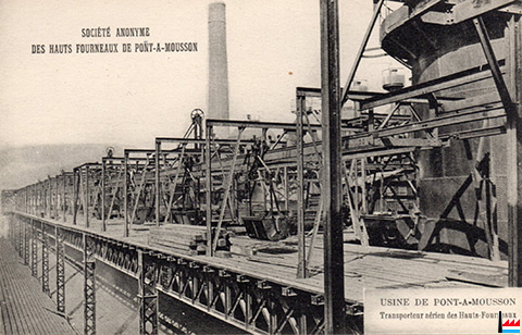 Société Anonyme des Hauts-Fourneaux de Pont-à-Mousson - Usine de Pont-à-Mousson - Transporteur aérien des hauts-fourneaux (Carte postale; Collection: industrie.lu)