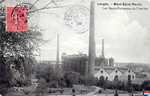 Hauts fourneaux du Port-Sec des Aciéries de Longwy - vers 1914 (Carte