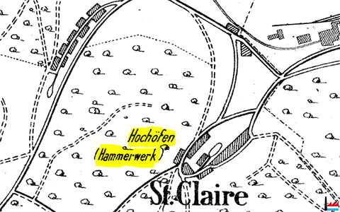 | 1910 | ![]() Hochöfen (Hammerwerk) Sainte-Claire (Übersichtskarte des Erzgebietes bei Deutsch-Oth, Esch und Villerupt - Kaiserliche Eisenbahn-Generaldirektion, Strassburg - 2.1910) |