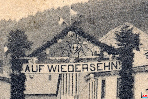 Wem wurde hier "Auf Wiedersehn!" gesagt? Veloscourse? - Fahrradrennen? Besteht ein Zusammenhang mit den Ardenner Fahrradwerke Ulflingen?