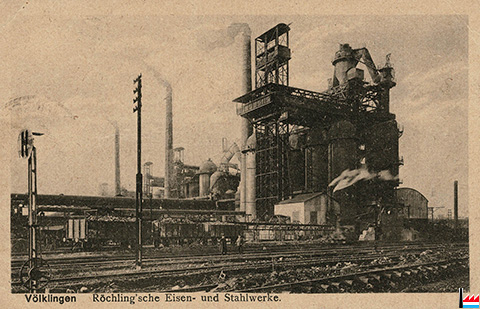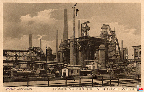und Stahlwerke, Völklingen - Briefstempel 12.7.1921 (Carte postale: Verlag P. Schwarz, Saarbrücken; collection: industrie.lu)