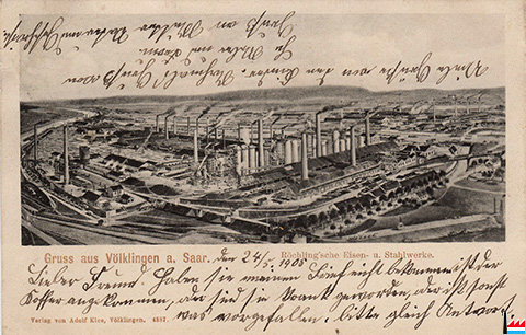 und Stahlwerke, Völklingen - Briefstempel 26.5.1905 (Carte postale: Verlag von Adolf Klee, Völklingen, 4887; collection: industrie.lu)