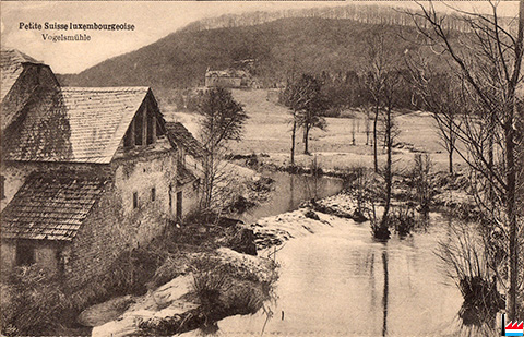 Vugelsmillen - Vogelsmühle, Grundhof - Berdorf (Extrait de la Carte postale: Kunstverlag P.C. Schoren, Luxemburg-Bahnhof Serie Müllertal 30; Collection: industrie.lu)