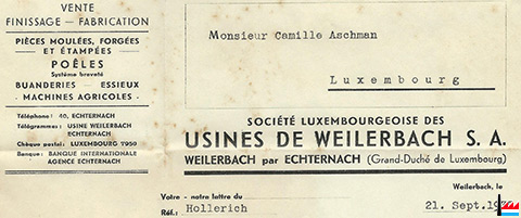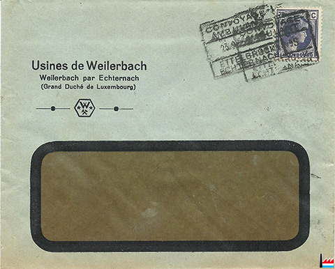 23.9.1935 - Usines de Weilerbach - Weilerbach par Echternach - Enveloppe à entête - Archives Camille Aschman Jr. - Collection famille Aschman-Bodson.