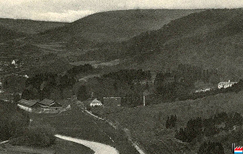 Weilerbacher Hütte im Sauertal - Echternach - Weilerbach - Bollendorf von der Wolfsschlucht (Paulsplatte) gesehen (Postkarte: J.M. Bellwald, Echternach No 194b; Collection: industrie.lu)