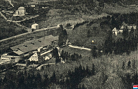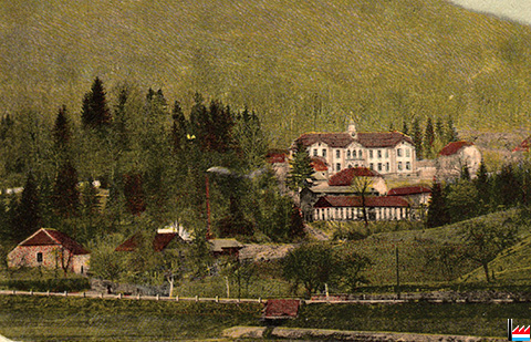 ![]() Sanatorium Neuens, Weilerbach (Luxemburg) - um 1912 - im Hintergrund Gebäude der Weilerbacher Hütte (Deutschland) (Carte postale: Verlag J. R. Waeger, Photog., Echternach 266; collection industrie.lu) |