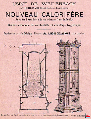 Nouveau calorifère breveté dans le Grand-Duché et les pays environnants. (Brevet Em. Servais) Usine de Weilerbach |