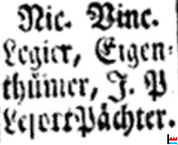 | 1797 | Die Hütte wird durch die "Convention" beschlagnahmt und an Louis-Vincent Légier, Provins (Seine et Marne) verkauft (Nicolas, Vincent LÉGIER, * 6.12.1754 à PROVINS (SEINE-ET-MARNE - France), + 1.7.1827 Bollendorf) |