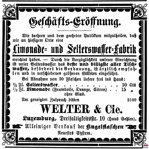 | 1910 | Jean Welter, limonadier, Hollerich - Feldgen: Fabrique de limonades et eaux minérales |