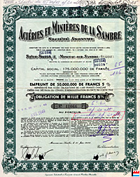 | <=1948 - >=1966 | Société Anonyme Aciéries et Minières de la Sambre Division: Monceau Division: Forges, Fonderies & Laminoirs de Nimy, Nimy Charbonnage à Fontaine-l'Evêque |