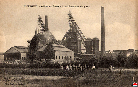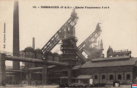 Isbergues - Hauts fourneaux N° 5 et 6 - vers 1953 (Carte postale: Edit. Delpierre-Duchateau; Collection: industrie.lu)
