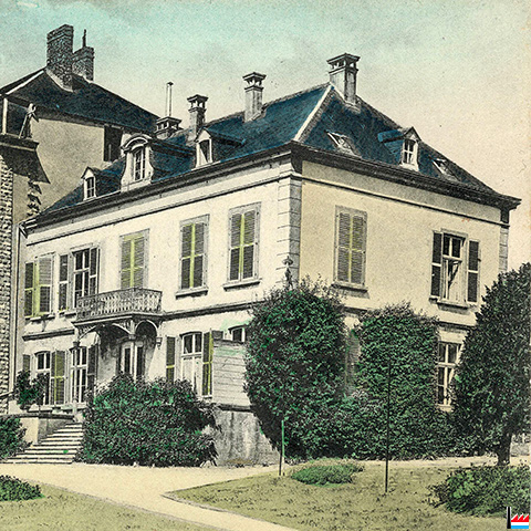 L'ancienne Villa André-Servais, 37 rue de Colmar-Berg, Mersch - construite en 1866 (Extrait de la carte postale: Verlag : Edm. Hansen, Mersch; collection: industrie.lu)