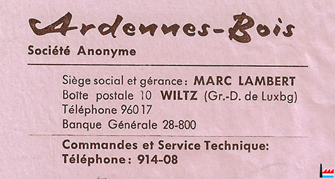 | 5.1967 | Désirons engager personne capable d’assurer les fonctions de Surveillant de Production et de Délégué Commercial. Permis de conduire et notions d’anglais nécessaires Connaissance en matière menuiserie utiles. ARDENNES - BOIS, S.A. Division matériel d’emballages et de manutention Case Postale 10, Wiltz (LW: 13 et 20.5.1967) |