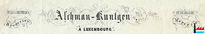| 1890 | Liste des contribuables imposés à 10 fr. et plus à la contribution mobilière de 1889. Aschmann Ed., veuve - Arsenal, Luxembourg. - 90 francs (Mémorial A n° 35 du 28 juin 1890). |