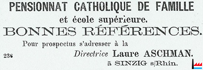 Les Aschman, restés sans descendance, et qui se plaisaient à tenir maison, habitaient le N° 74 de la Grand-rue, ancienne maison MARECHAL occupée aujourd'hui par la Papeterie Eugène Hoffman.