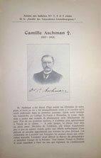 | 21.09.1883 | Avis. - École agricole. Par arrêté royal grand-ducal du 12 de ce mois, ont été nommés à titre provisoire : (…) Professeurs de 1ère classe à l'école susdite: M. Camille Aschman, docteur en sciences chimiques, répétiteur de chimie générale à l'Université de Louvain, et M. (...) . (Mémorial A n° 48 du 21.09.1883) |