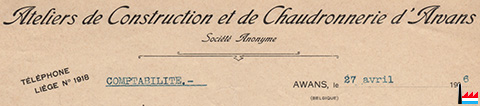 | <=1909 | Société anonyme Ateliers de Construction et de Chaudronnerie d'Awans ä Bierset - Awans |