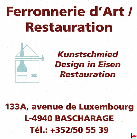 <=2003: Ferronnerie d'Art - Restauration - Kunstschmied - Design in Eisen Carlo Gehlen, Bascharage, 133A r. de Luxembourg, tél: 505539 |