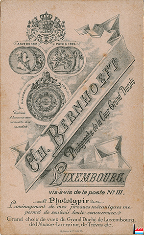 | <=1895 | Bernhoeft Charles, photographe, Luxembourg, 3 rue du Génie | ||||||||||||||||