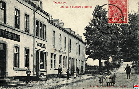 Pétange - Cité avec passage à niveau (Carte postale: Charles Bernhoeft, Luxembourg No 552; Collection: industrie.lu)