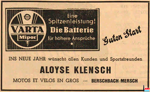 | <=1951 | ![]() Aloyse KLENSCH, Berschbach/Mersch, adresse? Motos et vélos en gros (LW: 2.1.1951) |