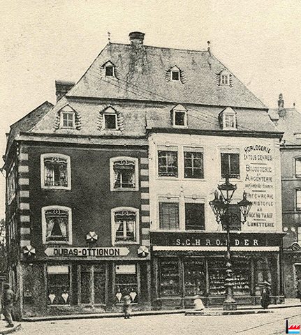 | <=1897 | ![]() Grand'rue, Luxembourg - vers 1897 (Carte postale: 358 J.M. Bellwald, Echternach; Collection: industrie.lu) Schroeder |