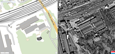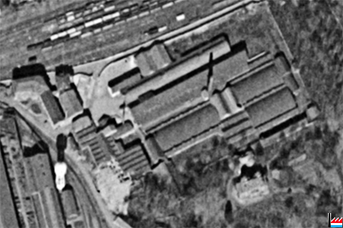 L'Usine de Carreaux Céramiques Boch Frères, Louvroil: à gauche Carte IGN - à la droite photographie aérienne historique 1957 (Source: https://remonterletemps.ign.fr)