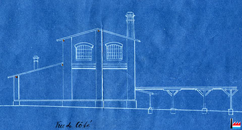 pour locomotive (bâtiment rayé en noir) et de l'Usine de