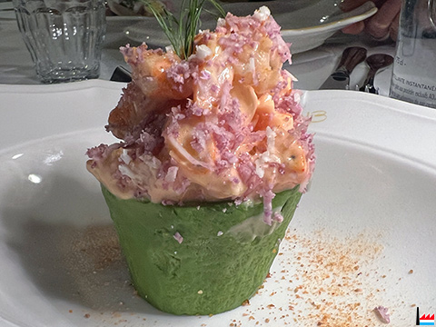 ![]() Avocat, crevettes roses bio, sauce cocktail - Maison B, Bridel (Photo: 8.3.2025 jmo) Turbot grillé, espuma de bisque, salsifis, couteaux - Maison B, Bridel (Photo: 8.3.2025 jmo) |