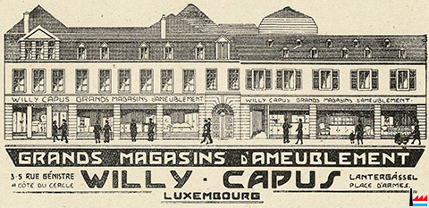 | <=1953 | ![]() Grands Magasins d'Ameublement Willy Capus, 3-5 rue Génistre (Lantergässel) à côté du Cercle, Luxembourg - 1953 (Luxemburger Herz-Jesu-Kalender 1953 - Kloster Howald, page 192; Collection: industrie.lu) |