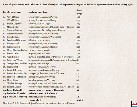 | 1.5.1906 | Les parts se répartirent comme suit (sur 2382 parts) : |