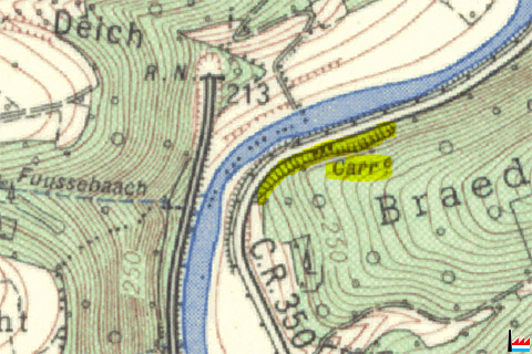 | <=1954 | ![]() Carrière Erpeldange - Michelau - 1954 © Origine Administration du Cadastre et de la Topographie Luxembourg (ACT) - Extrait de la carte topographique - 1954 - Autorisation de publication du 20.10.2010.» |