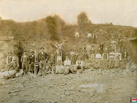 Fondation / Gründung: Capital social est représenté par 850 actions de 1000 francs chacune Parmi les associés, propriétaires de carrières, figurent Albert Noblet comme ayant fait apport e.a. d'une carrière de pierres de taille sise commune de Gilsdorf. |