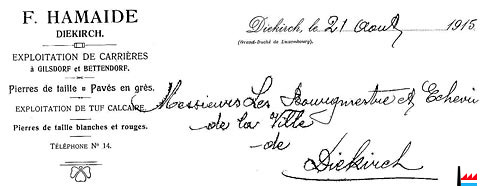 | <=1915 | F. Hamaide, Diekirch - Exploitation de carrières à Gilsdorf et Bettendorf |