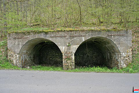 | Vom Concasseur führte eine 1,5 km lange Feldbahn zum Quarzitsteinbruch in der "Freng" | |