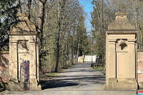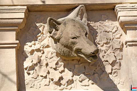 2 loups des 2 côtés de l'entrée du Château de Beggen, rue des Hauts-Fourneaux (Photos: industrie.lu)