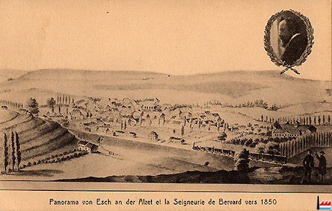 ![]() Esch an der Alzet - Seigneurie de Bervard vers 1860 ? (Carte postale: Coll. Jean Bervard - Caruso, antiquaire historien d'art, Luxembourg; Collection: industrie.lu) |