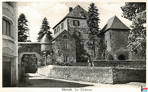 ![]() Mersch, le hall du Château féodal (13e siècle) - Auberge de la Jeunesse - 1936 (Carte postale: Manufacture de cartes-vues, E. Hansen, Mersch; collection: industrie.lu) |