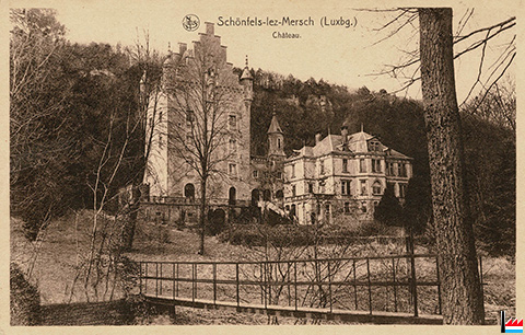 ![]() Château de Schoenfels, route de Mersch - vers 1906 (Carte postale: Nels, Luxembourg, Serie 14 No. 15; collection: industrie.lu) |