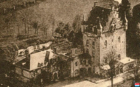| 1914 | Jonkheer Charles van de Poll seit einigen Jahren Inhaber des Schlosses Hollenfels, selbst ein Kunstkenner und Kunstliebhaber, verstand es, dem fortschreitenden Zerstörungswerk zu wehren und den Charakter des Burgstockes wahrend, denselben für sich und die Seinigen wieder wohnhaft zu machen. Des Herrn Jonkheer Schwägerin Elisabeth Aldegonde Prévinaire, eine Frau von Geist und hoher Intelligenz hatte, wie wir oben gesehen, den Baron Jules Marie Armand Goethals, den letzten Besitzer der Hollenfelser Schloßgüter geheiratet. Die Ehe blieb kinderlos. Bei seinem Tode hinterließ Baron Goethals seiner Gattin die Nutznießung all dieser Güter, während das Eigentum auf die natürlichen Erben, seine beiden Schwestern überging. Von diesen erwarb die Witwe Goethals das Eigentumsrecht durch Kaufakt, um es bei ihrem Tode 1914 ihrem Neffen, dem Jongheer Max van de Poll testamentarisch zu hinterlassen. (Ons Hémecht: 1.6.1935) |