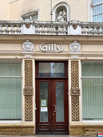 | 29.3.1924 | Geschäftsverlegung Schuhhaus Gilly jetzt 3 Häuser weiter, Ecke 13 Krautmarktstraße und Fleischerstraße, vis-à-vis Lentzeneck (früher Haus Floréal) Jeder Kunde erhält eine Tafel Schokolade gratis. (LW: 31.3.1924) |